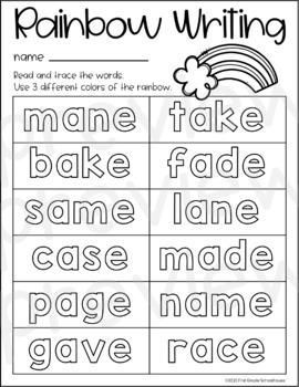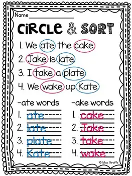 This set is chock full of activities including circle and sort, cut and paste, word sorts, write the word, color by family, and much more. Kids will play and learn the long a silent e concept in so many different ways! Practice makes perfect and this set provides plenty of practice.