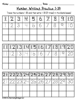 Next up, we have 1-30 number practice from IHeartTeaching. If you want all the practice without all the printing, this is the one you need. This product is a single page covering the numbers 1-30.