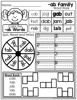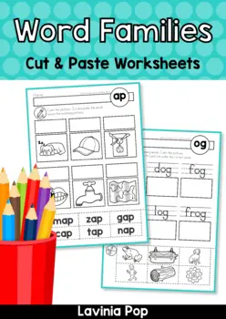 With nearly 50 pages of practice, LaviniaPop has created these word family cut and paste worksheets to keep kids busy and learning. It features the word families -ab, -ad, -ag, -am, -an, -ap, -at, -ed, -en,-et, -id, -ig, -in, -ip, -it, -ob, -og, -op, -ot, -ub, -ug, -um, -un, and -ut. These are good for morning work, homework, literacy centers, or wherever you need them.